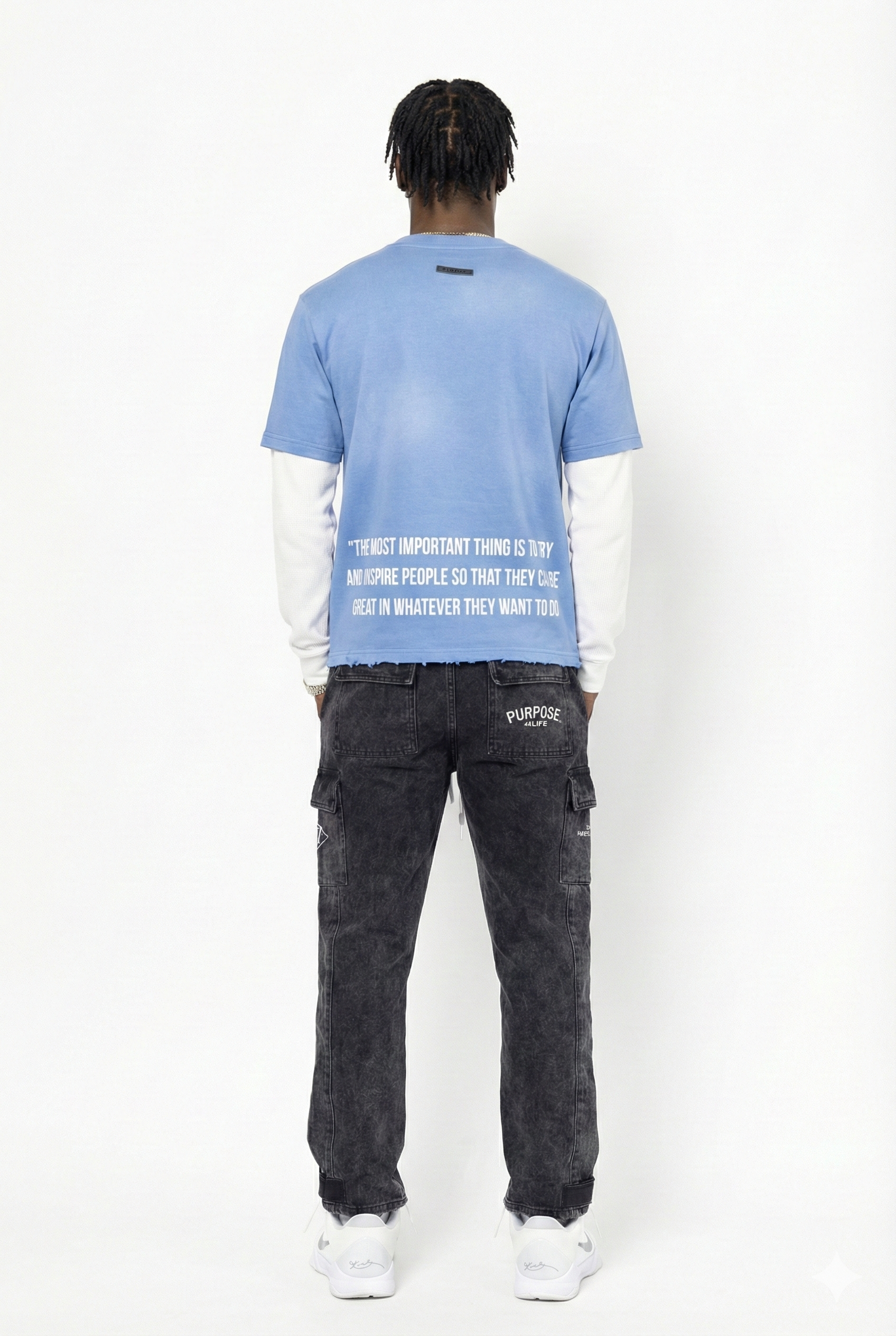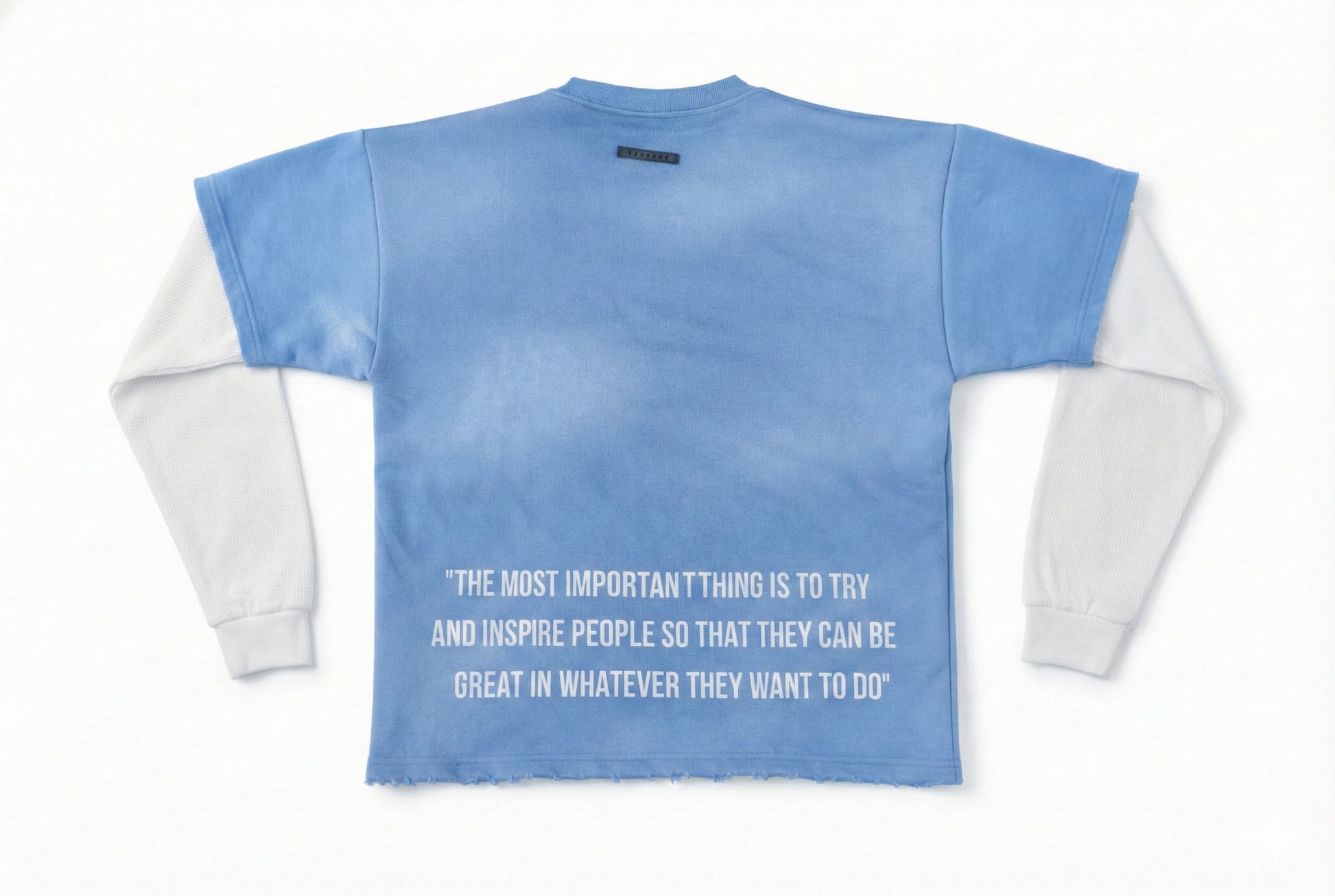Finished with a cropped raw hem and soft structured fabric, this piece bridges motivation, legacy, and everyday streetwear.